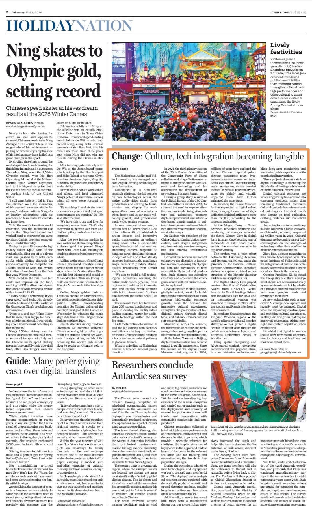 从长沙马栏山视频文创财产园AI赋能微短剧译制,到故宫、敦煌莫高窟为文物付与“数字生命”,科技正为文化“出海”插上起飞的同党。2月21日,《中国日报》头版头条“焦点不雅”专栏推出报道《Technology transforming creativity(人工智能帮力文化财产“出圈”又“出海”)》,以长沙马栏山视频文创财产园等为案例,讲述我国鞭策文化取科技深度融合,借帮数字手艺鞭策文化财产立异和文化遗产,不竭拓展文化“出海”的新模式和新径。