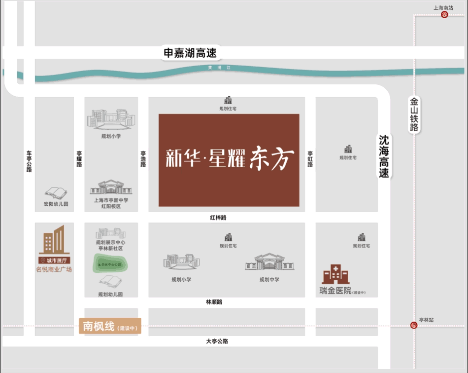 距离亭林病院约2公里,项目南侧有正正在扶植中的三甲级瑞金病院,金山院区一期项目,用地面积132亩,设置医疗床位400张,南侧的体育公园配套设备也正正在慎密的筹备中。