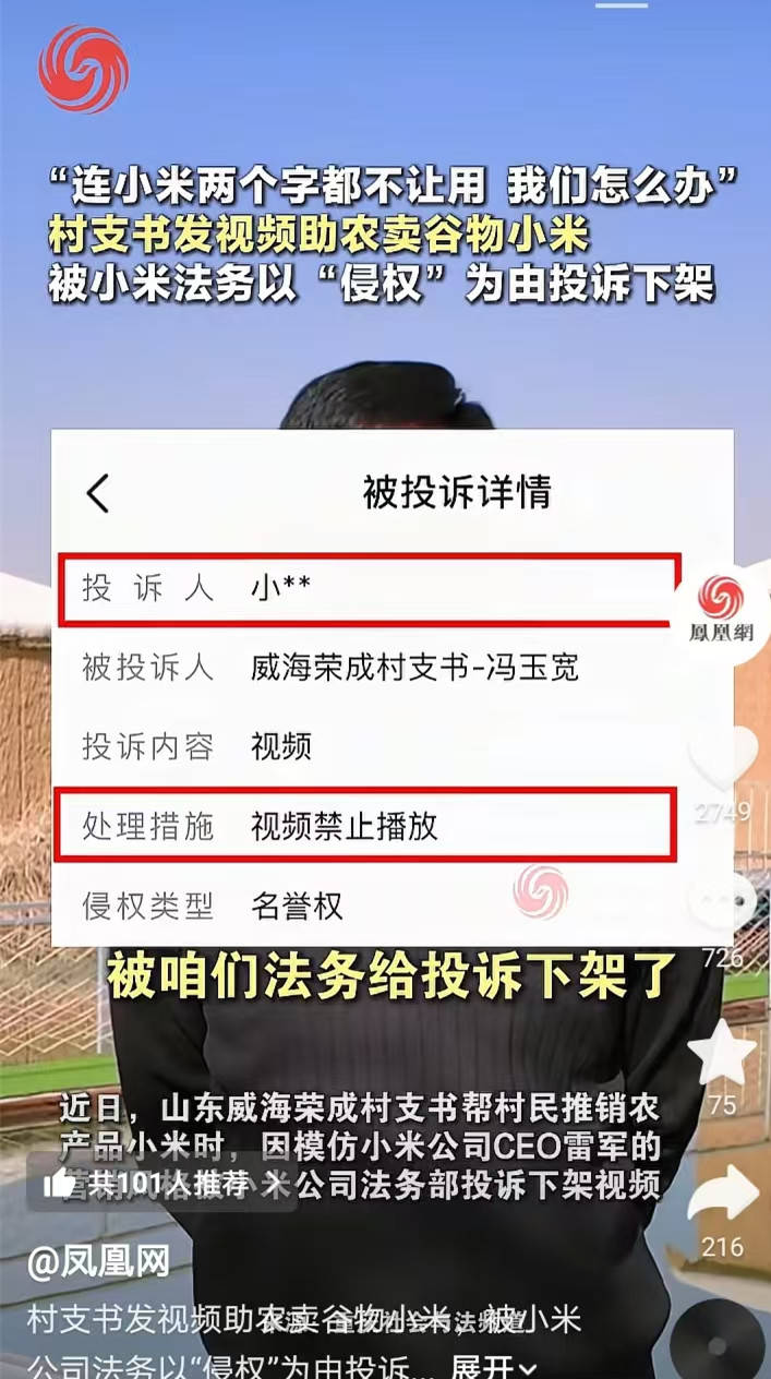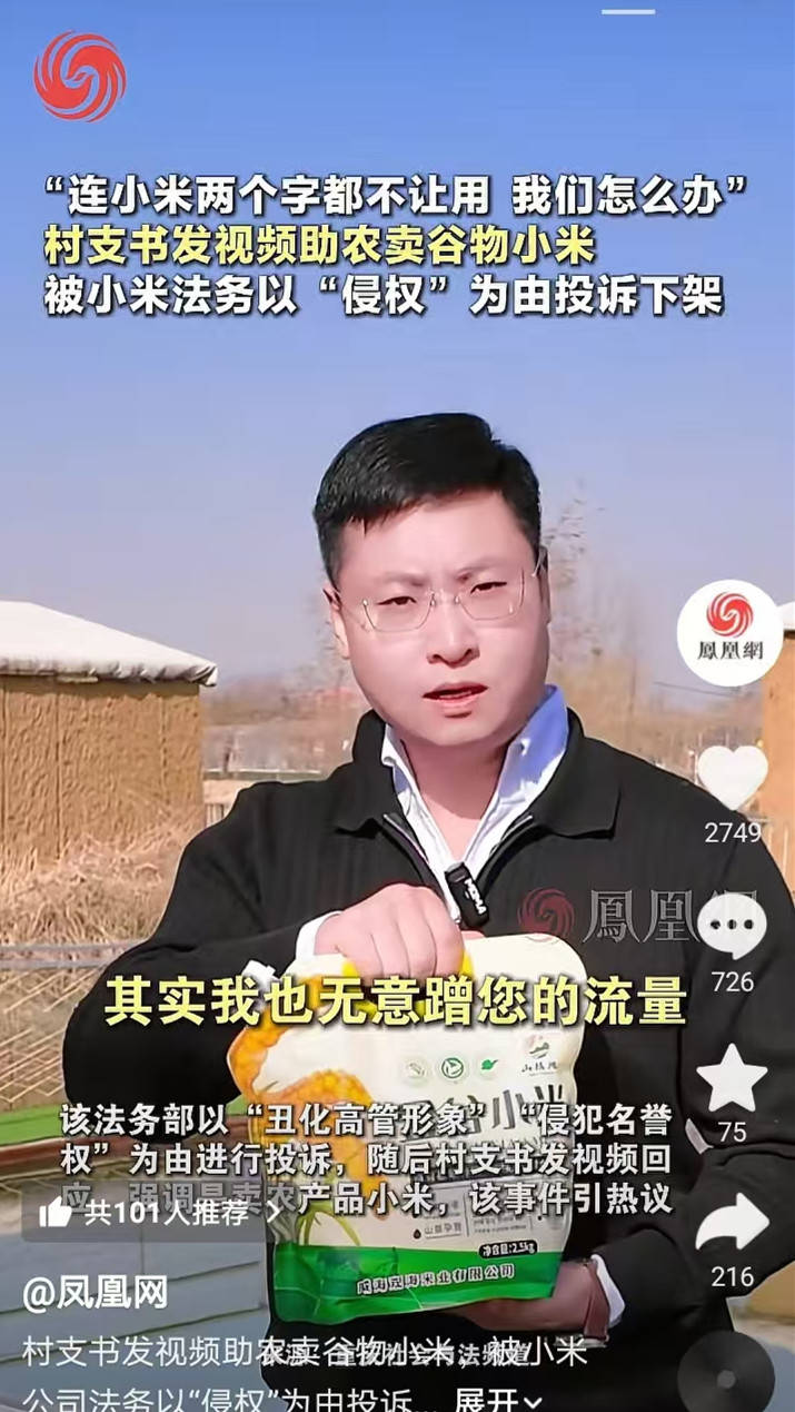 正在曲播帮农成为村落复兴主要径的当下,一场发生正在山东威海的农产物推广风浪,不测扯开了品牌取下层创业之间的矛盾裂痕。12月10日,山东威海荣成市西初家村村支书冯玉宽的一段农产物推广视频被小米公司法务赞扬下架,来由是“联系关系雷氏营销”“小米高管抽象”。这场看似简单的赞扬事务,因涉及大企业取村落创业者、商标权取通用名称、营销立异取侵权鸿沟等多沉议题,敏捷正在收集空间激发轩然大波,分歧立场的网友展开了一场取情感化交错的深度会商。